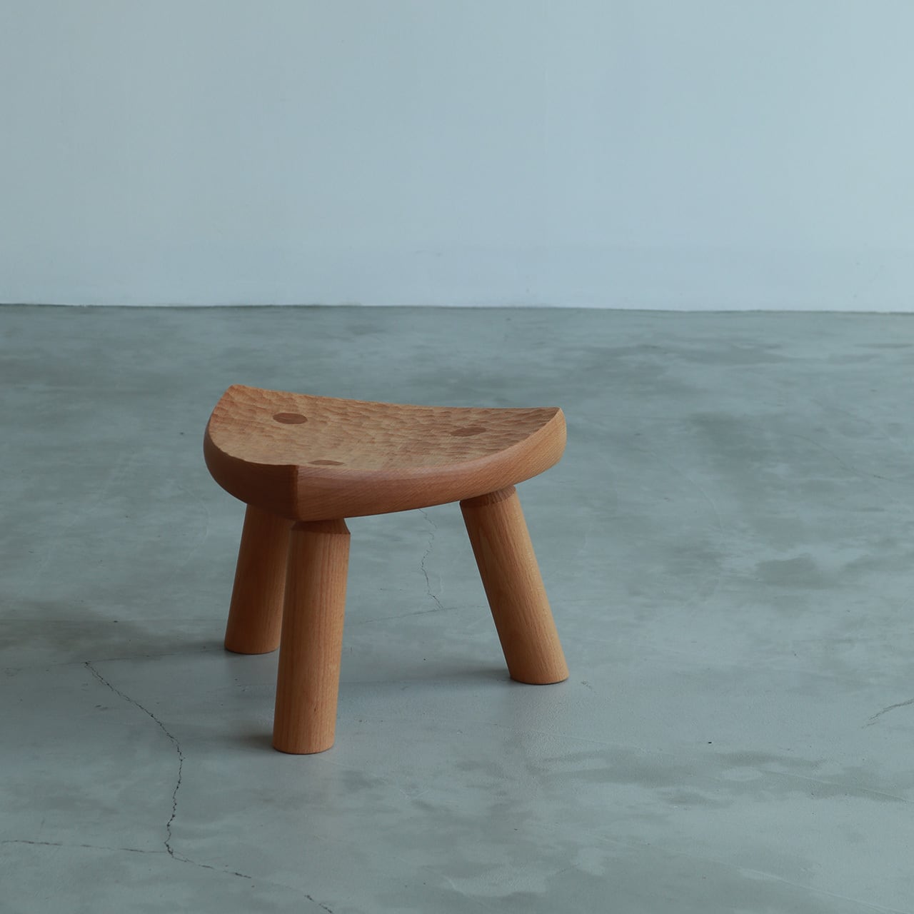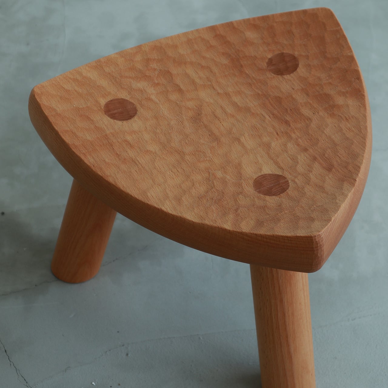 刃物で仕上げた木肌が特徴の小さなスツール。
