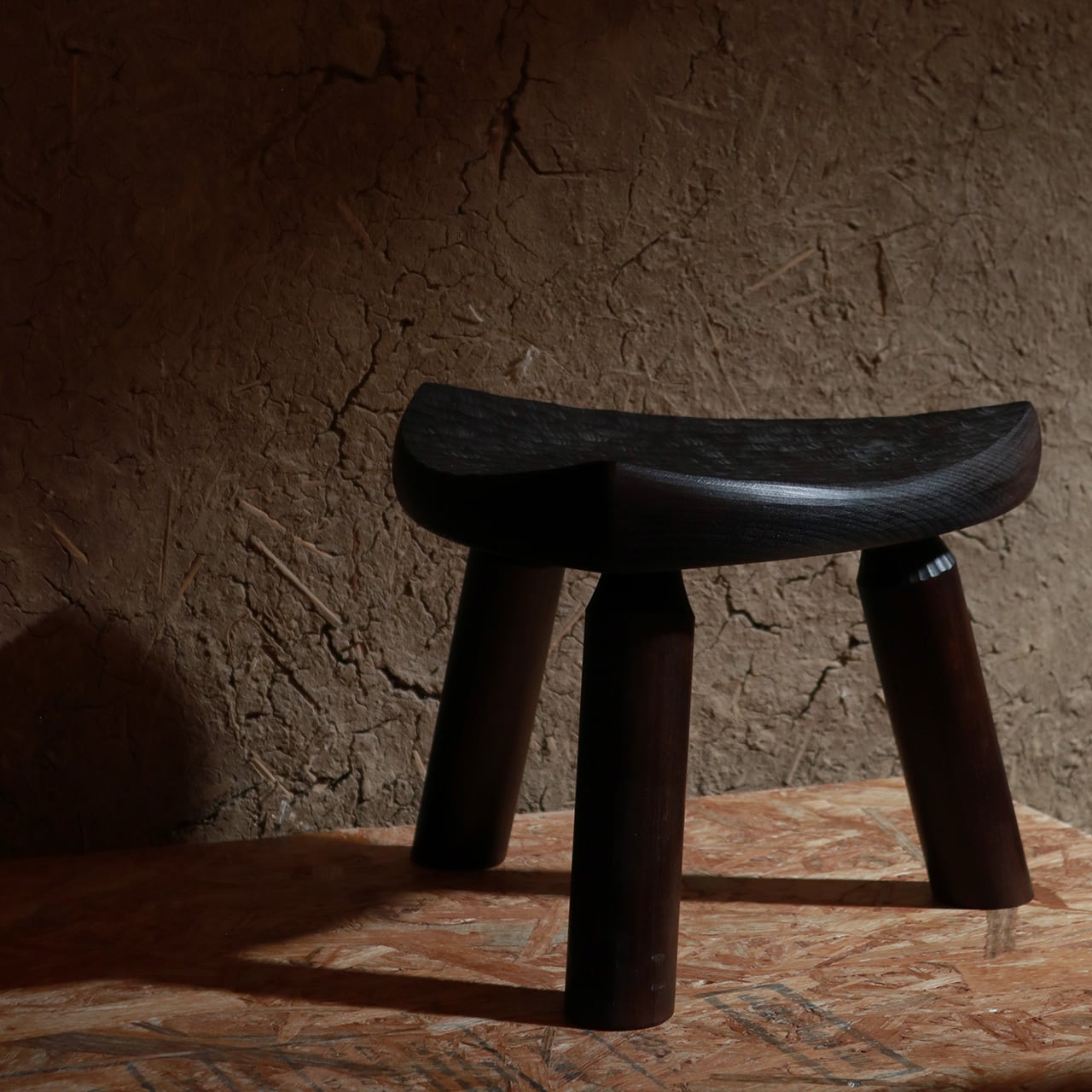 刃物で仕上げた木肌が特徴の小さなスツール。